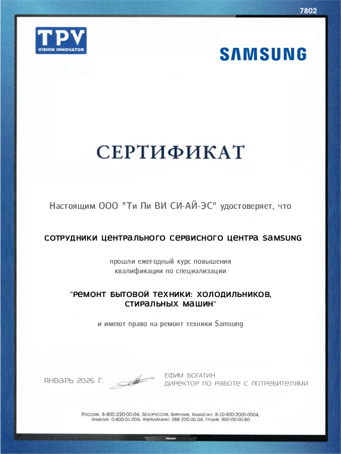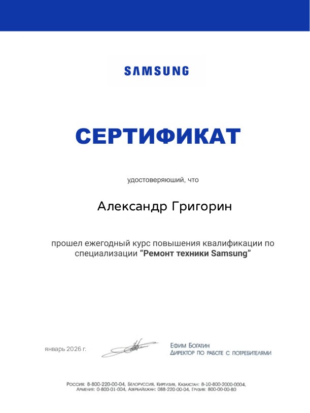 Проблема возникла не критичная, но решил хотя бы узнать, проконсультироваться. На холодильнике Samsung RL-52 TEBIH начал моргать дисплей, то медленнее, то быстрее. Все остальные функции работали как обычно. После диагностики и прозвона на дому мастер нашел обрыв проводов в зоне изгиба между дверями и корпусом холодильника. Ремонт занял полчаса. Жена попросила мастера еще посмотреть общее состояние техники, выполнил просьбу бесплатно. Спасибо, довольны